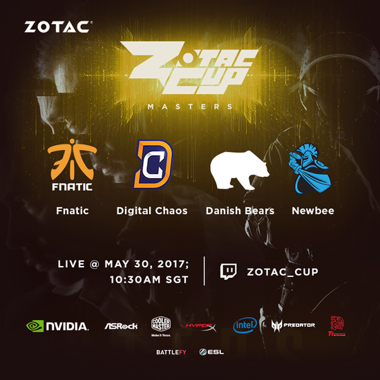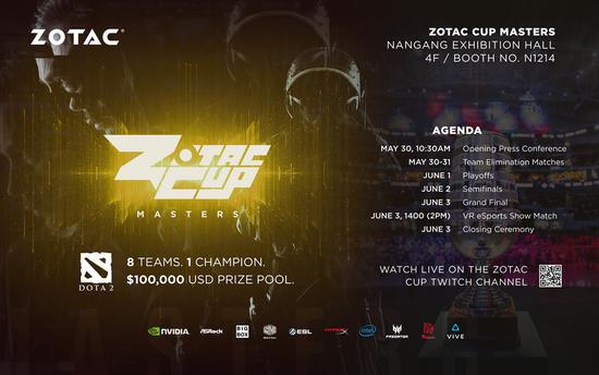 ZOTAC CUP MASTERS DOTA2大赛总决赛将和COMPUTEX硬件展同步展开,来自全球各赛区的6支预选赛冠军队伍以及直接邀请的2支顶尖强队,共计8支国际DOTA2战队蓄势待发,将于5月30日在台北COMPUTEX再次点燃战火的烽烟。8支顶级战队巅峰对决,争夺10万美元的总奖金以及ZCUP DOTA2杯赛总冠军荣誉。