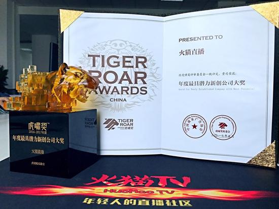 2017年5月,第十一届虎啸国际高峰论坛暨第八届虎啸奖颁奖典礼于上海商城完美落幕,在本届颁奖盛典上,火猫直播闪耀全场,一举夺得“年度最具潜力新创公司大奖”。