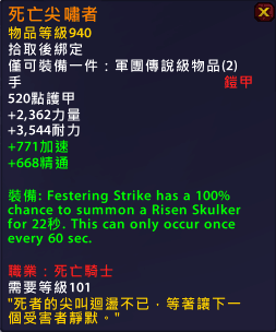 就算改掉第10条的bug,让他成为描述中一秒一层,按目前数值也是一个10万以上dps的特效,让它不光是冰dk的第一橙,也是邪dk的第一橙。