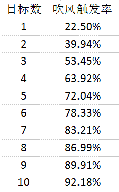 镰刀的一大buff。楼主先做了一组1/2/3目标镰刀触发测试,各打50发镰刀。具体见下表: