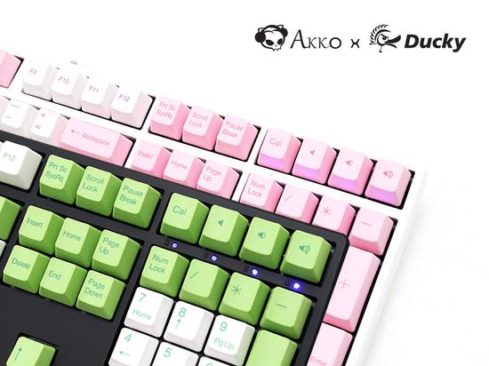 “Ducky是很早就开始推出热升华产品的厂商,One也是很经典的一款模具,我们决定让这个经典和时代一起延续下来, 在与Ducky探讨以后, Akko和Ducky在十七个配色样本里面选取了两个新的配色, 作为One的2017年新品配色, ---草木奶绿和冰激凌粉就这样诞生了,既符合Ducky的前卫的设计理念, 也和Akko青春时尚风格相得益彰。”