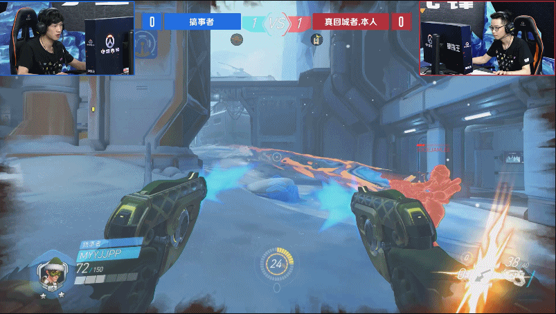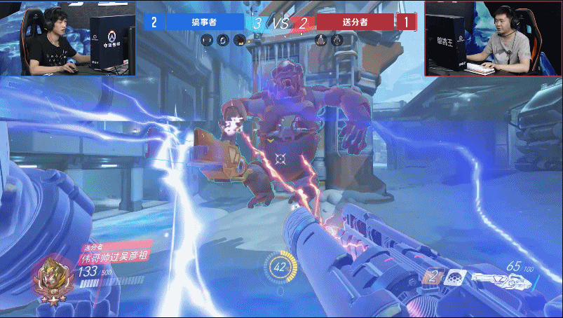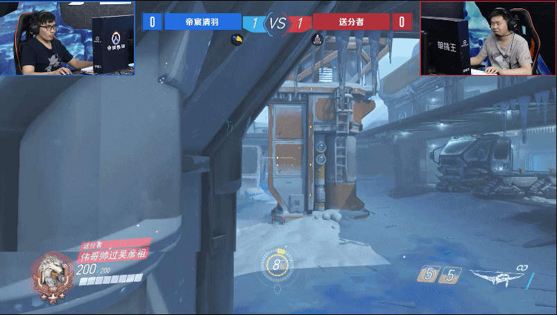 于是第二回合,伟哥一改之前的迂回战术,破釜沉舟的与老李展开了正面交锋。虽然老李的枪法略胜一筹,但伟哥在重装型英雄的近战对决中却更有经验,于是比赛很快进入胶着状态,两人比分交替上升至4:4平,进入赛点。