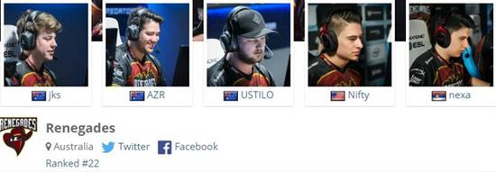 继承了最早的澳洲队伍VOX的阵容而组建的Renegades是整个亚洲,中东,大洋洲赛区唯一一支有Major大赛经验的队伍(另一支队伍Immunity也曾打入Major大赛但已完全更换新阵容),被中国玩家称为“澳洲一哥”常年称霸整个亚洲地区,即使是最巅峰时期的Tyloo战队也是与Renegades五五开。