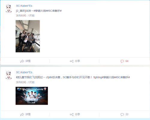 小编注意到了在SC。触手战队队长Kuben老哥的触手直播平台空间里,是一片摩拳擦掌、枕戈待旦的氛围(Kuben直播间地址:https://chushou.tv/room/66601.htm),儿童节直飞沈阳备战,带着往日王者的骄傲,SC。触手战队对这次比赛的冠军势在必得。