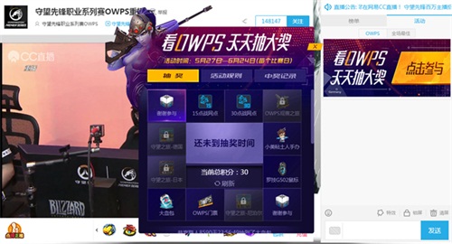 在每周,微博用户可以参与CC直播官方话题#来CC直播看OWPS#,在话题下进行留言互动,就有机会获得《守望先锋》OWPS常规赛门票哦!微博用户无论是转发、评论或是点赞任何有关于#来CC直播看OWPS#的话题,只要登上后台“互动榜前列”的朋友,都将获得《守望先锋》OWPS常规赛门票,互动榜排名第一的用户,更会惊喜相送!