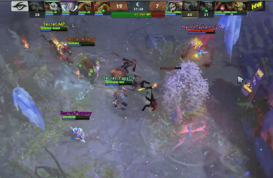 第二局SECRET对线期小优,NAVI剑圣到6后亲自带起节奏,SECRET没有视野被NAVI连抓了多人,加上帕克蝙蝠也开始加入战斗,NAVI逐渐打出人头优势。接着术士有大时,NAVI就组织一波推进,SECRET正面打不过,NAVI杀人拿塔,开始掌控局势。之后SECRET找到一波NAVI人不齐的机会,在对方圣坛处打了个1换4。接下来SECRET卡尔虚空装备逐渐成型,NAVI几次正面团都没打过,让SECRET把局势打了回来。SECRET优势下不停找NAVI开团,双方圣坛一战,NAVI靠着三人买活打了SECRET一波小团灭,并拿下不朽盾。但NAVI随后带盾推进,由于冲的太深,让SECRET反打来了一波团灭,SECRET趁势破掉NAVI中路高地,一举奠定胜局。41分钟,SECRET打完肉山推上,NAVI交了所有技能秒小强,结果没杀死,SECRET攻破上路高地。43分钟,SECRET转到下路,NAVI开雾绕后打最后一波,结果让SECRET打出0换2,SECRET推掉最后一路,NAVI团灭GG。