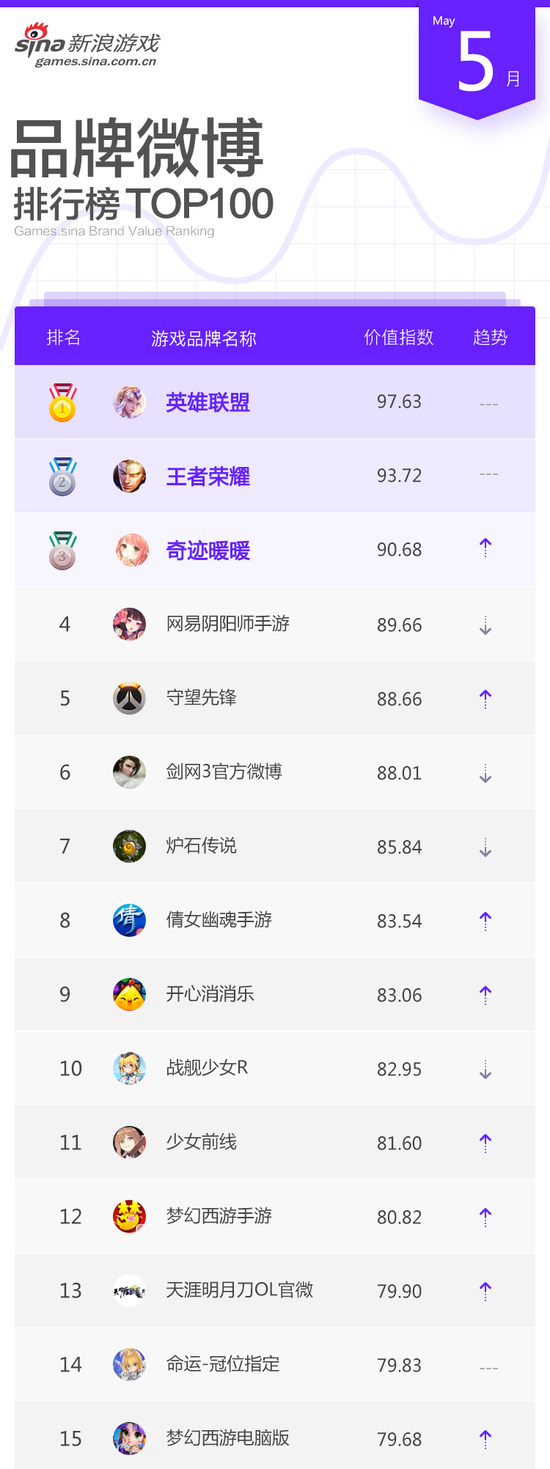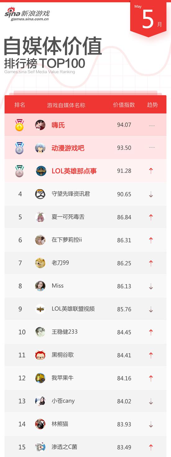 5月新浪游戏自媒体与游戏品牌排行榜TOP100现已重磅发布!