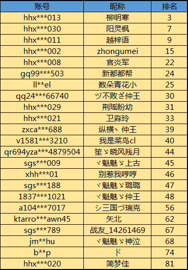 2017年CMEG赛事从赛事规模、赛事资源、赛程赛制、赛事模式等进行了全方位的精进和升级,赛程和赛制方面也针对《三国杀》做了特有的优化。64强名单的出炉大力推动了CMEG2017《三国杀》赛事迈向更为激烈的晋级赛阶段,同时在确保《三国杀》高水平、高质量、公平公正的参赛、晋级中,CMEG官方组委会和《三国杀》游戏项目方一直在全力维护。CMEG2017《三国杀》在比赛中有部分玩家通过代打、多开小号等行为进入前64强,并占据多个名额。为保证比赛的公平性,现已将该批账号剔除,以下为违规账号名单: