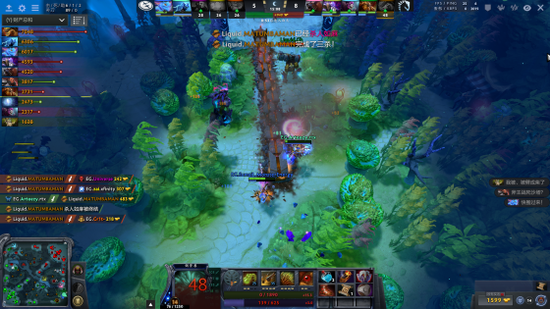 上一局吃了线上的亏,第二局比赛中EG拿出了女王跟拍拍两个线上能力超强的核心。Liquid双游小鹿跟大鱼人也不是吃素的,稍补等级后连续几波线上支援让EG线上的优势荡然无存。18分钟EG偷盾,即便有着肉山盾,面对Liquid逐渐成型的双核推进业占不到什么便宜。