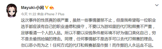 在此我对大家表示诚挚的歉意,对于我做出的代打行为带给大家的失望,我程张奕劼愿意接受大家的批评与所有的处罚。但我依旧会在之后的日子里努力练习,即使我的天赋在大家眼中不是很高,我也会努力的提升自己的水平,为各位同好带来更加精彩的比赛,希望中国星际选手们,更希望我自己能取得更好的成绩。