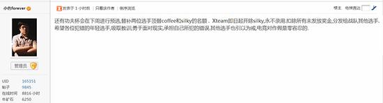 星际2解说黄旭东(小色)是代打涉案选手Silky的战队负责人,在事件曝光后,这位老解说也做出了自己的回应: