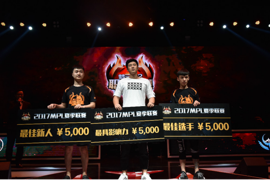 2017MPL夏季赛总决赛共选出三位“赛季之最”,为奖励本赛季表现最好的选手,鼓励他们能在以后的职业联赛中奋勇向前,坚持到底!三个奖项分别是:最佳新人-Ziyo雷一;最具影响力-神迹 走秀;最佳选手-诗月 紫夜,这三位选手每位都将获得5000元人民币奖励。