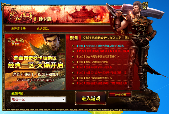全新《热血传奇秒卡版》新区“电信一区”已正式开放角色预注册!光辉岁月诚邀您的入驻!