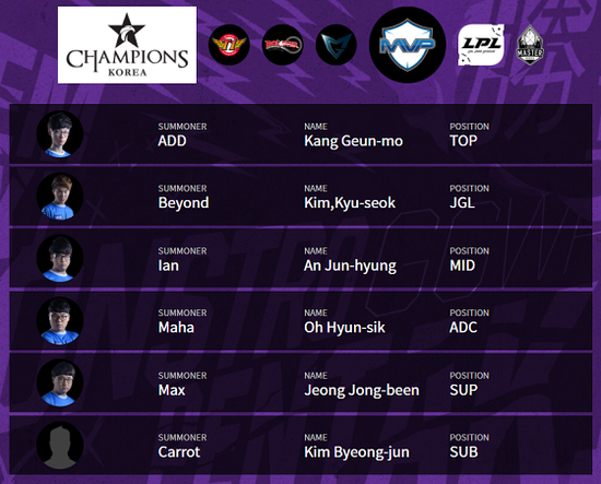 LMS各队阵容: