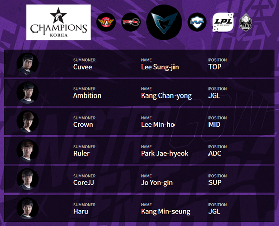 LCK各队阵容:
