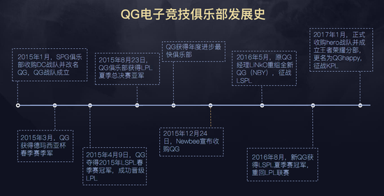 凭借着以人为本的管理制度,注重战队人员能力培养,职业素养打造以及职业精神的追求,QG战队在成立之初就展现了强大的实力。2015年,QG便在职业联赛大展拳脚,先后获得德玛西亚杯冠军,LSPL春季赛冠军,LPL夏季赛冠军,IEM科隆站亚军,进而斩获当年进步最快俱乐部奖项。在随后的一年,重组后的QG(NBY)再次展现出强大的实力,过关斩将获得LSPL夏季赛冠军,从而成为英雄联盟界不可忽视的神话。新番资本打造QG的成功,最主要的点 是自己研发了一套“战队数据分析系统”,可以直观的让训练组看到选手的训练数据及赛后的分析。