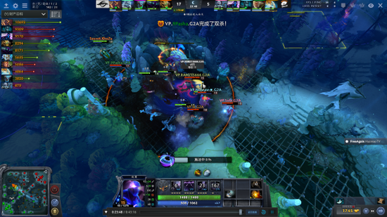 终于拿出正常阵容的VP对钱期打的如鱼得水,三路开花VP前期取得优势。到了中期VP又开始浪了起来,敌法跟死亡先知的先后阵亡将局面演变成互刷局面。21分钟跟32分钟VP连控制两个肉山盾,利用盾的优势逐渐拉开经济差距。最终伴随着RAMZES666敌法引爆“核弹”拿下暴走,VP拿下了决胜局的胜利。