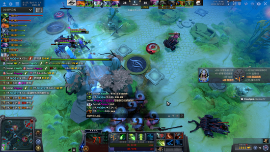 第四局VP的双核轮到剑圣加恐怖利刃出场,Secret拿出圣堂刺客、钢背兽以及瘟疫法师的三核阵容