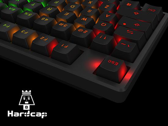 “铠砚Hardcap”键帽是Ducky参与研发的专属键帽品牌,本次配置的PBT二色透光键帽含高度PBT,均匀透光,不易打油,具备良好的手感和美观性,是RGB键盘良好伴侣。