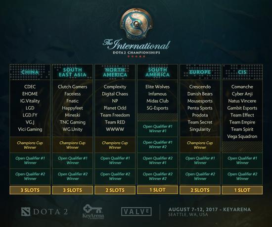 由火猫全程直播的TI7国际邀请赛又将在这个夏天拉开帷幕,而V社在DOTA Summit 7结束之后立刻公布了TI7邀请名额,国外战队EG、VP、Liquid、OG和国内战队iG、Newbee受到了V社的眷顾。另外今年的赛制也做出了改动,全球四个大赛区将分别有三支战队,共12支队能够出线,加上直邀一共18支队将分成两组进行小组赛BO2循环积分赛,每组最后两名被淘汰,剩下的16支队通过双败淘汰赛争夺DOTA至高荣誉——TI冠军盾!