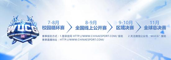 WUCG2017赛季中国区的比赛共设立四大区域赛,经过校园预选赛激烈角逐产生的校冠军晋级区域决赛,区域决赛冠军将晋级全球总决赛,最终和来自亚洲,北美洲,欧洲的高校冠军争夺全球高校电竞王者桂冠。