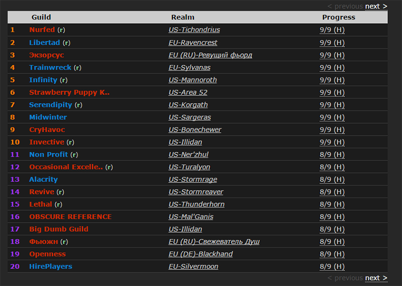 再来看看外服的情况,截止这篇文章发布前,外服也已经有10个公会队伍拿下了9/9(H)的进度。