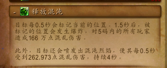 (2)释放混沌的跑动原理其实和古尔丹的跑火差不多,全团点名,每人0.5秒一次一共出4个圈,吃一个不会死,但是尽量不吃,只要移动起来肯定就不会中,后跳很好用,这也是我前面推荐远遁的原因。