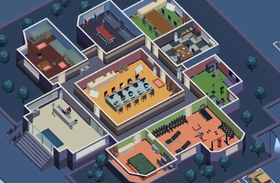 游戏中的基地最初只有一个训练房,而随着基地的升级,可以建造休息室、娱乐室、健身房、餐厅、康复中心、媒体室以及周边室。当全部建造完成后,基地就会扩展成这个样子。