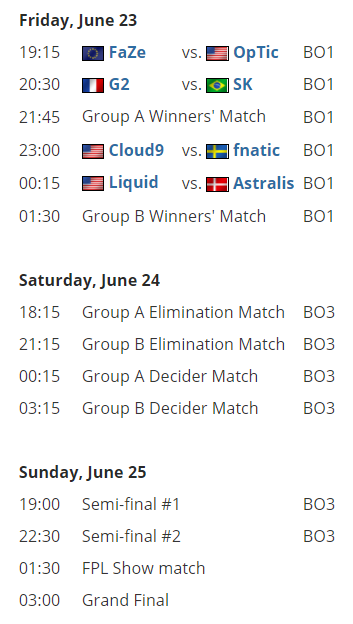本届ECS S3赛季总决赛举办地回归伦敦。比赛时间为6月23-25日,地点则为温布利SSE体育场。比赛共8支队伍参赛(4欧4北美),奖池为66万美元。