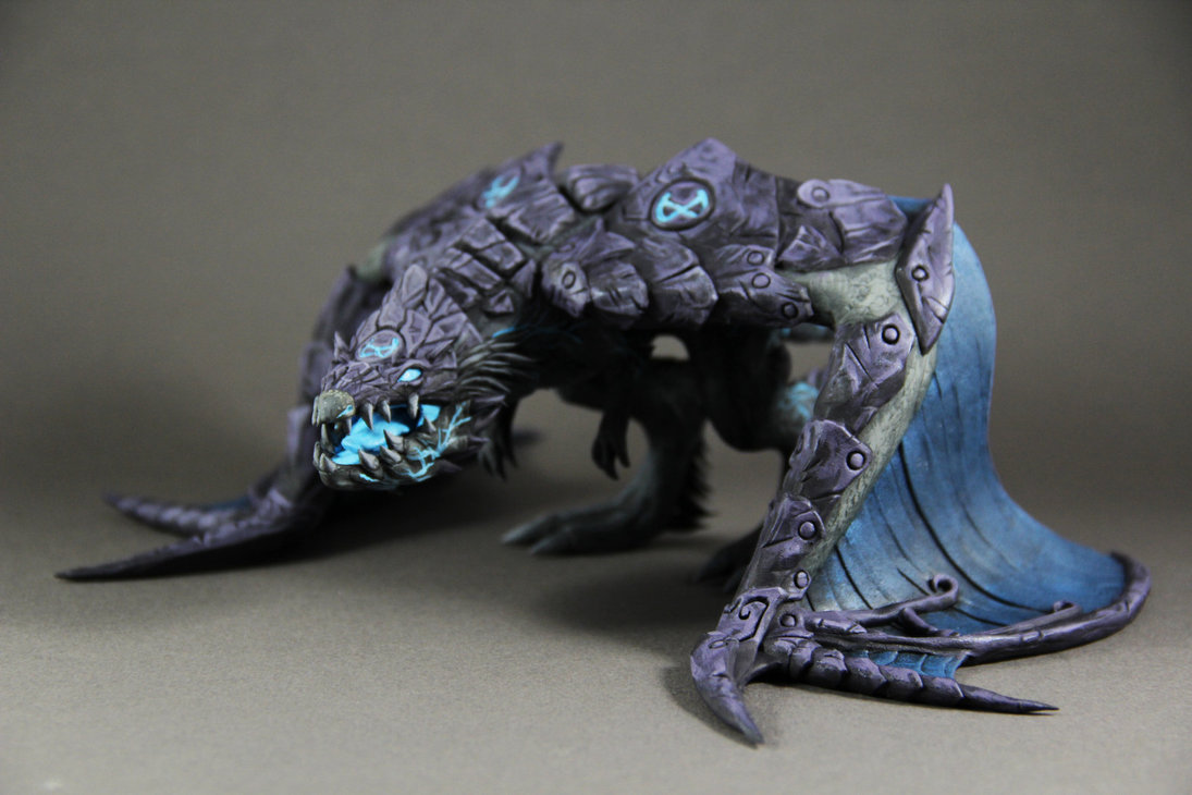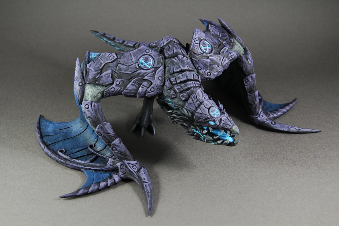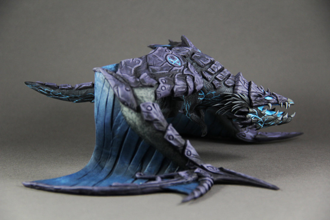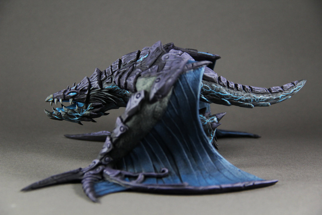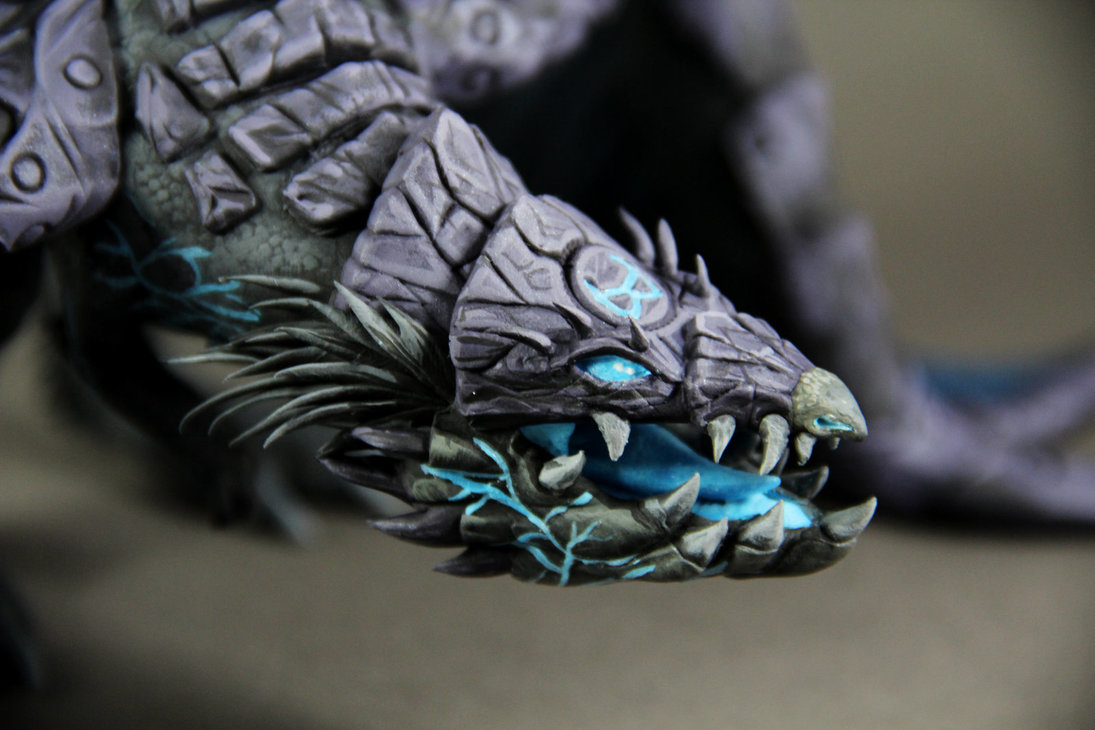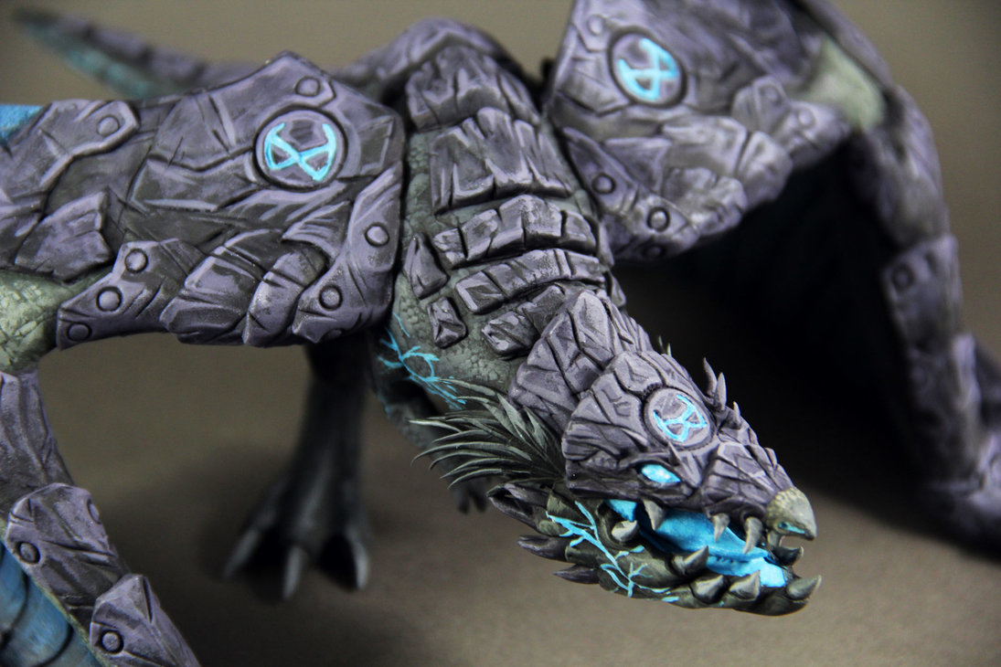 国外大触ColibriWorkshop制作的奥杜尔始祖龙BOSS锋鳞(Razorscale)。这个手办高约9厘米,身长约20厘米,翼展约25cm。制作精良,在黑暗环境下还能看到手办上符文的荧光。