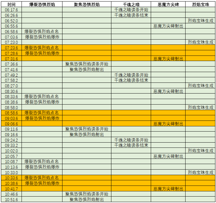这一阶段前面的技能都不再使用,只保留了射线分担以及点名大圈。新增千魂、火球、方尖碑。
