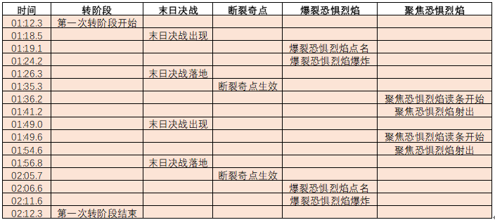 如果dps慢的话,会出第二次末日决战,由于距离第一次末日时间超过60秒,第一次去踩火的人debuff已经消失,依然大家抢着踩就行。