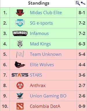 这十支队伍清一色的都是各个国家的国家班子,目前来自巴西的两只队伍Midas和SG名列前两名出线,巴西DOTA!best DOTA!来自秘鲁的Infamous和Mad Kings分列三四名。看来南美DOTA就是巴西和秘鲁的对决啊,倒数第一的哥伦比亚DOTA你学到了吗?说句题外话,巴西的美女热情奔放,巴西的DOTA也有点这个倾向。
