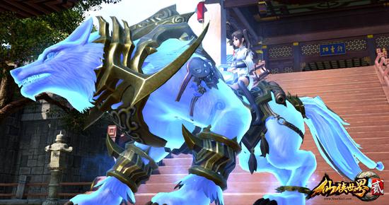 “幻世神兽”是《仙侠世界2》此次更新后开放的一款体型硕大的神兽坐骑,其长相犹如传说中的梦魇,不过通体呈浅色系。该坐骑的体型比现有的坐骑要“宽厚”一倍有余,但不要因此而质疑他的奔跑速度哦,一点都不会减慢!