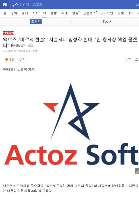 来自韩国媒体消息,针对近日韩国娱美德公司声称将单方私自授权中国大陆地区的传奇私服,作为“MIR2:热血传奇”游戏权利人的亚拓士公司严正声明:此侵权行为涉嫌严重违法。