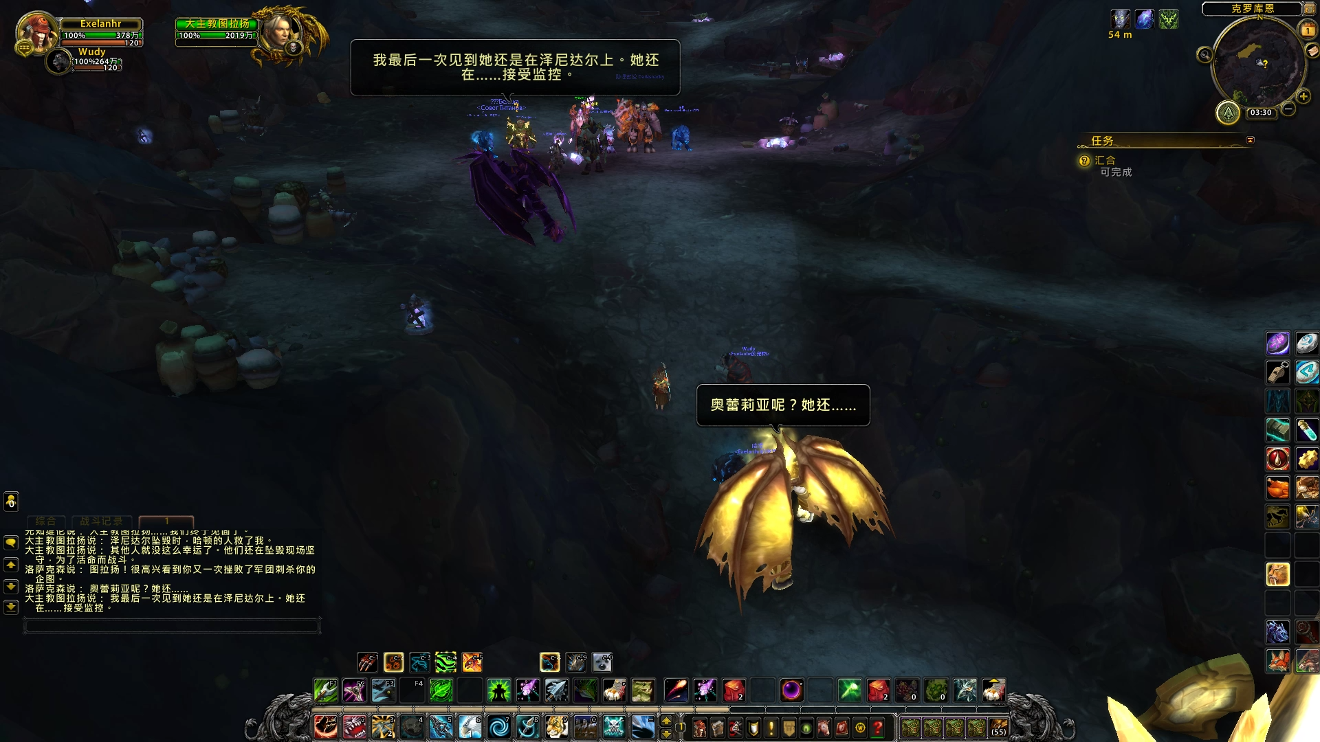 下面这张图是个BOSS战,大姐突然从虚空现身,对所有人都射出箭雨。并且,奥蕾莉雅登场时放的箭矢上疑似能看见都是虚空能量啊!细思极恐!