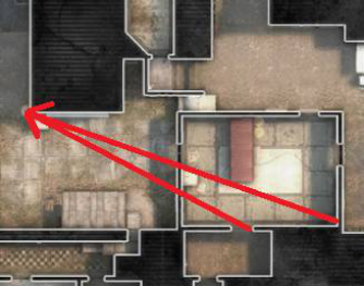 以上两个点位的穿射路线我在小地图上用红线标记出来如下:(T中厅墙壁的穿射效果=铁门)