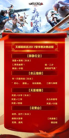经过数轮激烈角逐,大话2免费版天梯巅峰战2017夏季赛已落下帷幕,来自各个服务器的诸多顶尖队伍齐聚在这个舞台,与旗鼓相当的对手一较高下,留下许多精彩的战斗瞬间!本次季赛的冠亚季殿军现已出炉,他们分别是: