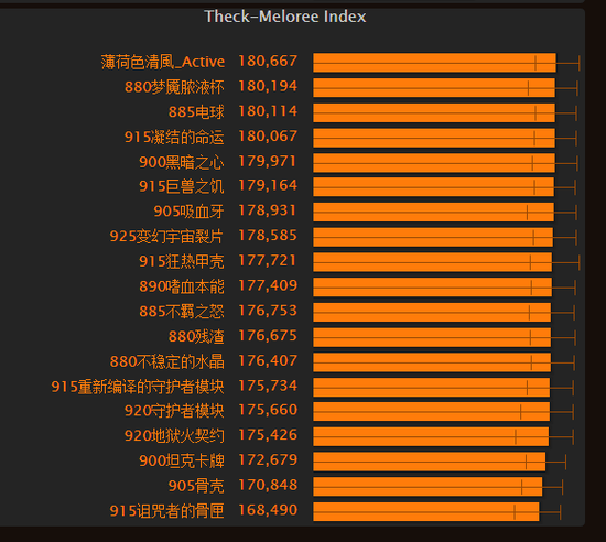 具体选择饰品时应更加关注饰品的TMI分布(注意看每个条形图最尖端有个误差分布的小框),离散程度越小的饰品通常越稳定。