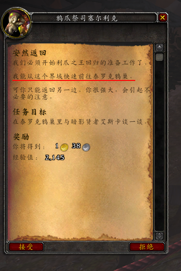 要回答上面的问题,我们先搞清楚,传送术的根本目的是什么?——快速到达某地。这里我们再拿翡翠梦境来举例,在现在版本的德鲁伊职业任务中,多次出现过一个叫做“翡翠之路”的概念,就是通过穿越翡翠梦境,使德鲁伊能快速到达现实位面的许多地方,而那些地方存在梦境传送门(不玩小德所以没有文本的截图)。这个设定其实一直都有,在小说上古之战三部曲中就曾提到过:
