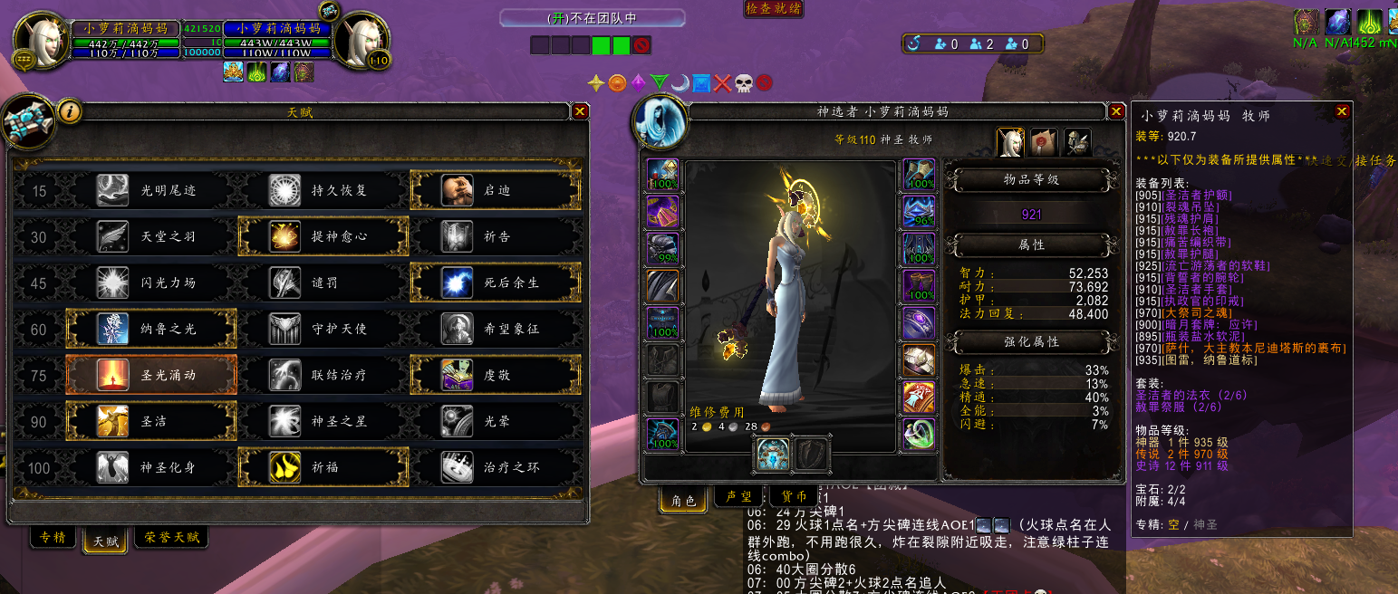 2。不知道是不是因为新两件套的触发,我整场灵占比很高,团血有压力但又不是我的减伤的时候我会提前给主T愈合祷言,然后灵+3治疗祷言+愈合祷言+灵,基本一个小团刷就结束了。