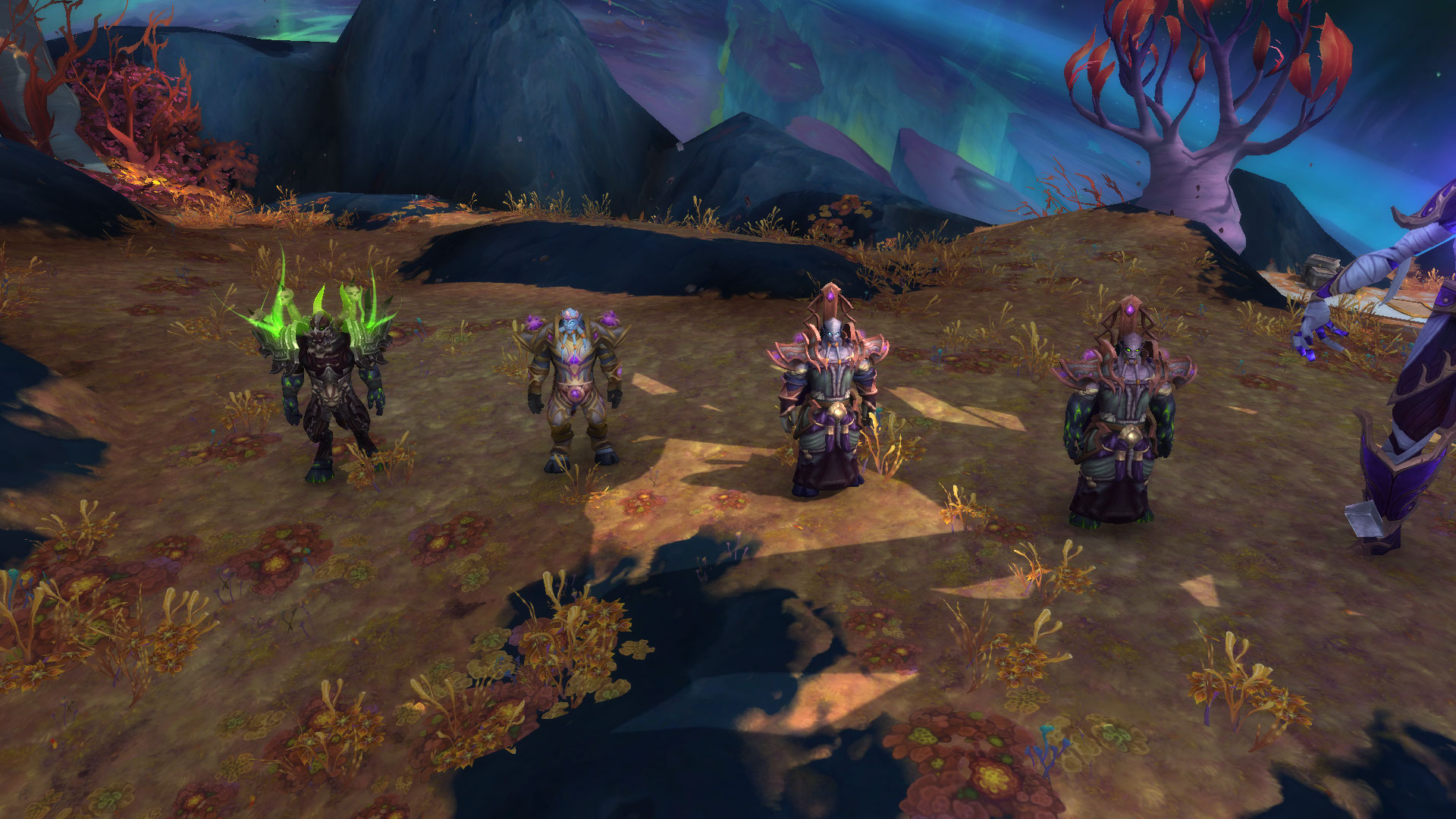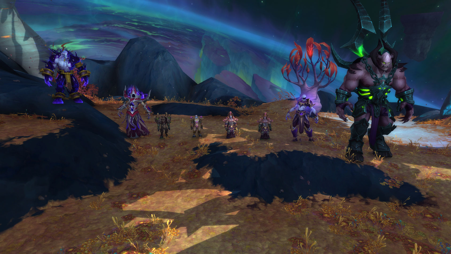 从左至右:塔尔加斯、基尔加丹、阿克蒙德,过场动画中还有一个萨格拉斯NPC。