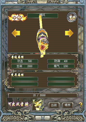 千里马常有而伯乐不常有,身为一个行侠仗义的侠客怎能少了良驹相伴,坐骑不但使您的角色更拉风、跑图更快,同时也会带来属性加成,当然,马儿要跑,也要吃草,在获得坐骑丹的时候不要忘了喂养升级坐骑,升级后的坐骑更会带来高额属性提升,更让您如虎添翼,出奇制胜!(坐骑幻化后会更拉轰炫酷,并有额外属性加成喔)