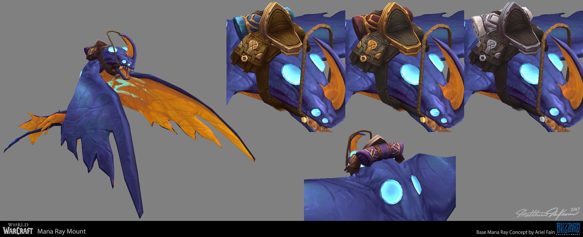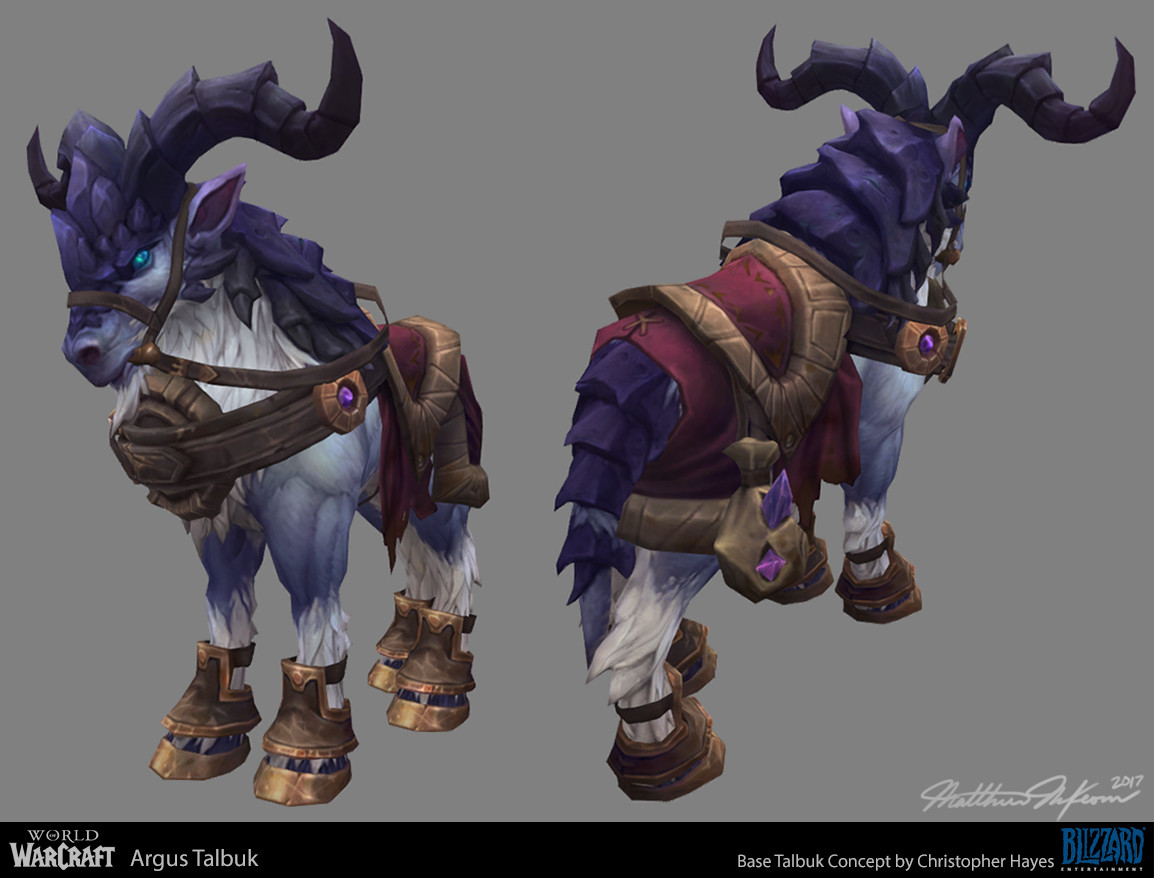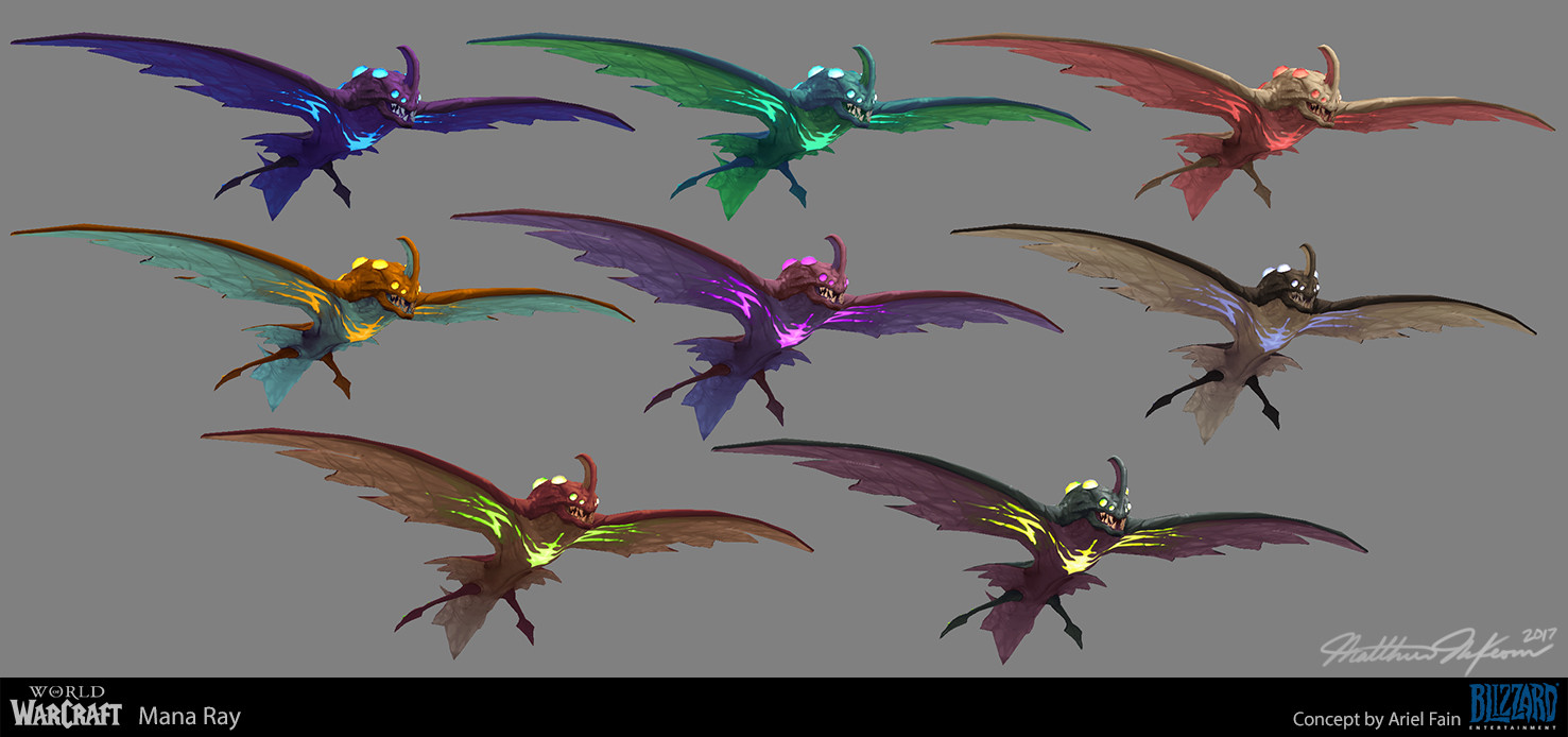 暴雪角色设计师Matthew McKeown所设计的一些7.3版本生物,阿古斯穴居人、法力鳐和塔布羊。