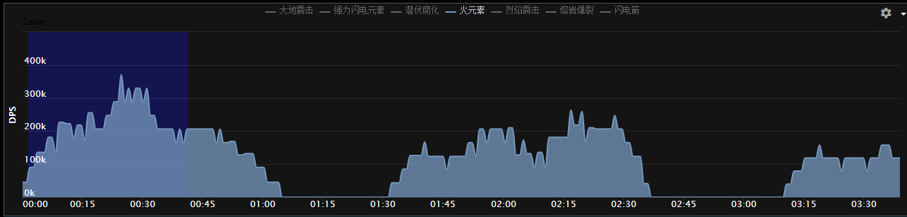 可以看出3分39秒的战斗,火元素开出了3次,其中第三次打了大概一半的时间,4T20效果的覆盖率66.6%,升腾的覆盖率为30%