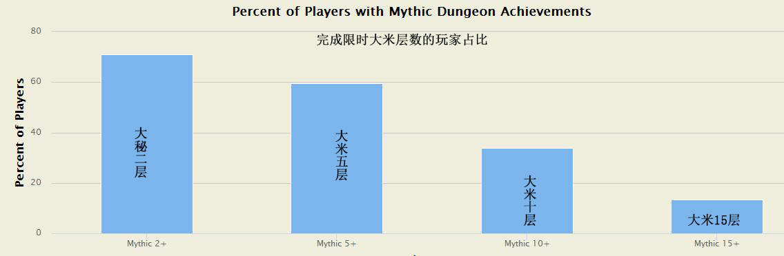 mmochampion统计了欧美服近一个月活跃的180万玩家的大秘境通关情况,限时完成15层大秘境的玩家仅占到13.35%,限时10层则有33.8%。