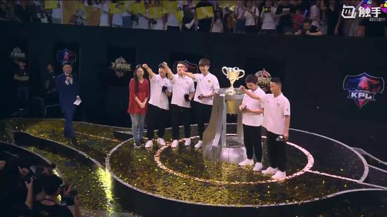兵线保护?没用!冠军?势在必得!水晶破裂后,满场金花升起,红蓝的光线刹那变成金色。全场都是QG的标志,满地都是粉丝尖叫掷地之声。