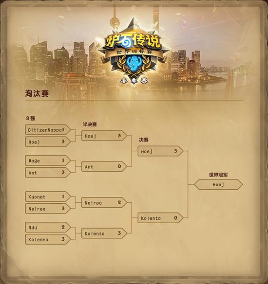 2017《炉石传说》世界锦标赛春季赛于7月9日在上海落下帷幕,经过三天的精彩对抗,丹麦选手 Hoej 在决赛中以 3:0 的比分击败了久负盛名的 Kolento,获得了本次世锦赛春季赛的冠军。四强中的另外两位选手是 Ant 和 Neirea,他们也获得了参加今年世界锦标赛年度总决赛的名额。