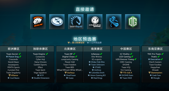 直接受邀:OG、VP、EG、Liquid、iG、Newbee