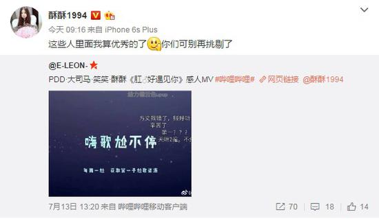 今天小编闲来无事,在逛微博的时候发现知名主播酥酥转发了一条视频,并配文“这些人里面我算优秀的了,你们可别再挑剔了”。小编仔细一瞧,这个视频的标题上还有“大司马、笑笑和PDD”。这不禁引起了我的注意。到底是什么样的内容竟引来酥酥转发呢?